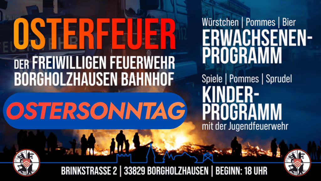 Tage Stunden Minuten Sekunden Osterfeuer 2026! Zum dritten Mal findet in diesem Jahr das Osterfeuer am Gerätehaus Brinkstraße 2 statt!Wir freuen uns, euch Ostersonntag ab 18.00 Uhr zu begrüßen! Ob Bratwurst, Pommes oder auch die Feuerwehr kennenlernen – für jeden ist was dabei! Wir freuen uns auf euch! Reist nach Möglichkeit bitte zu Fuß oder […]