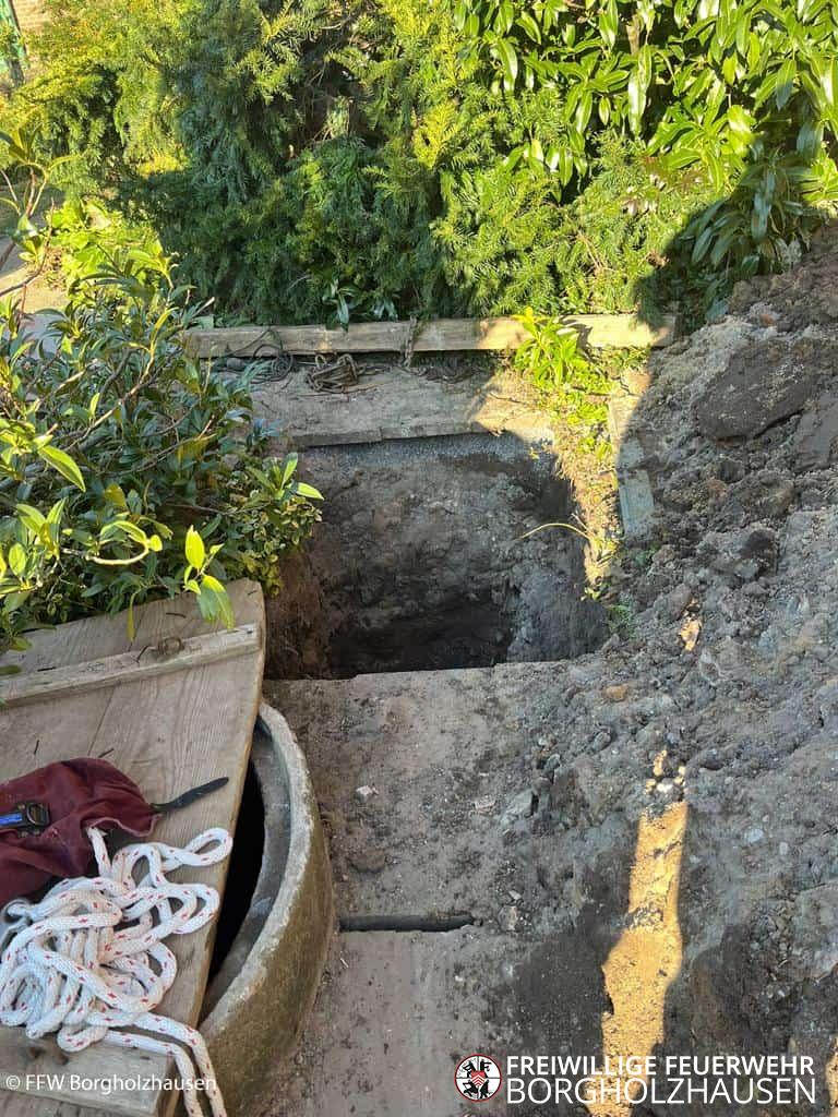 Lage bei Eintreffen: Person wurde schon vom Rettungsdient aus der Baugrube gerettet. Maßnahmen: Kurze Rücksprache mit dem Rettungsdienst.