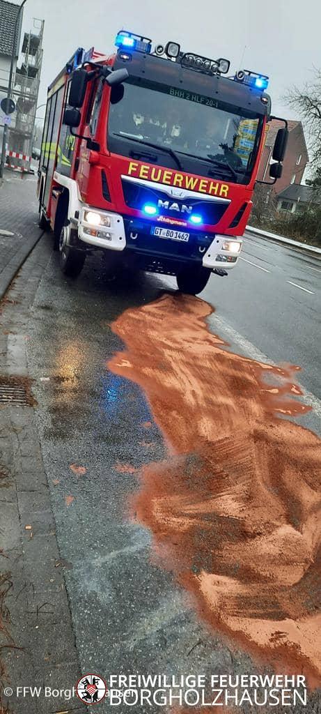 Einsatz: Technische Hilfeleistung – Sonstige Hilfeleistung 07.06.2024, 17.55 Uhr Bahnhofstraße / Teutoburger Straße Heute Nachmittag wurden die Löschzüge Stadt und Bahnhof zu einer Hilfeleistung an die Bahnhofstraße und die Teutoburger Straße in Borgholzhausen gerufen. Vor Ort hat ein Tankauflieger eines Lohnunternehmens schwarze dickflüssige Flüssigkeit verloren und auf einer Strecke von mehreren hundert Metern in der […]