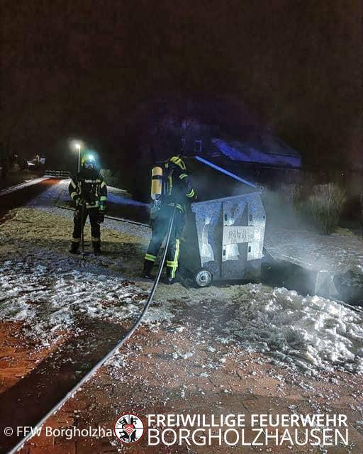 Meldung: b1 Container freistehend brennt Lage bei Eintreffen: Beim Eintreffen des BHH 1 HLF 10 qualmt es aus dem Inneren eines 1000 – Liter Müllcontainers aus Stahl. Maßnahmen: Es wurden ein Trupp unter Atemschutz mit Schnellangriff für Nachlöscharbeiten des Containers eingesetzt.Der Müllcontainer blieb unbeschädigt.Einsatzstelle übergeben an die Polizei.