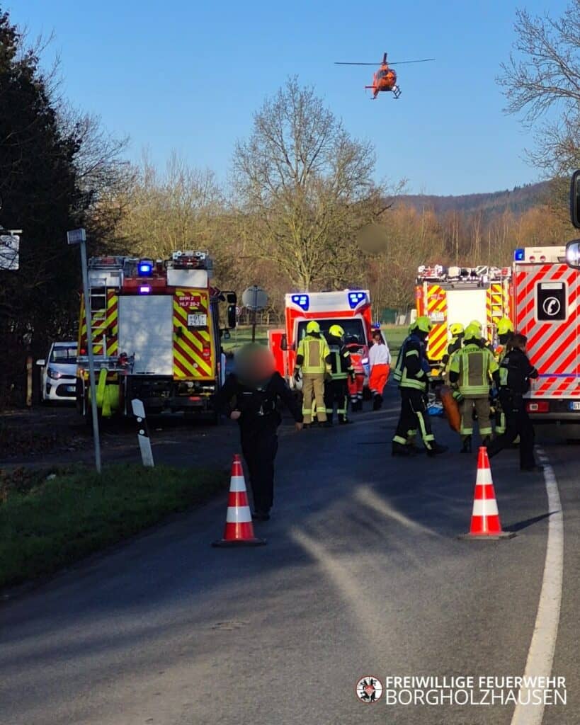 Am Montagvormittag wurden die Löschzüge Stadt und Bahnhof der Feuerwehr Borgholzhausen unter dem Einsatzstichwort „Eingeklemmte Person“ zur Osnabrücker Straße (K26) alarmiert. Vor Ort kam es zu einem Zusammenstoß zwischen einem Pkw und einem Radfahrer. Der Radfahrer war unter dem Fahrzeug, einem schwarzen Mercedes-SUV, eingeklemmt und befand sich in einem lebensbedrohlichen Zustand.