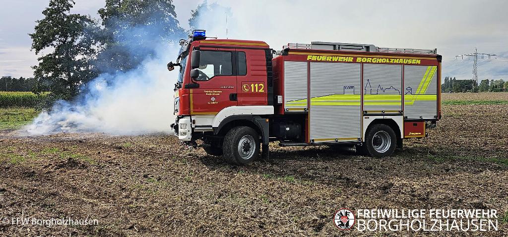 Lage bei Eintreffen: Brennt Strohmiete auf dem Feld