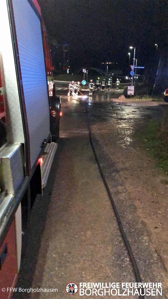 Fahrbahn und Gehweg wurden mit Wasser vom Fahrezugtank gereinigt.