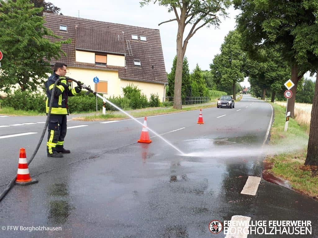Lage bei Eintreffen: Vermutlich war ein Lkw mit einem Reh kollidiert. Die Straße wurde daraufhin auf einer Länge von ca. 100 m verunreinigt. Das Unfallfahrzeug hatte sich unerkannt von der Einsatzstelle entfernt.