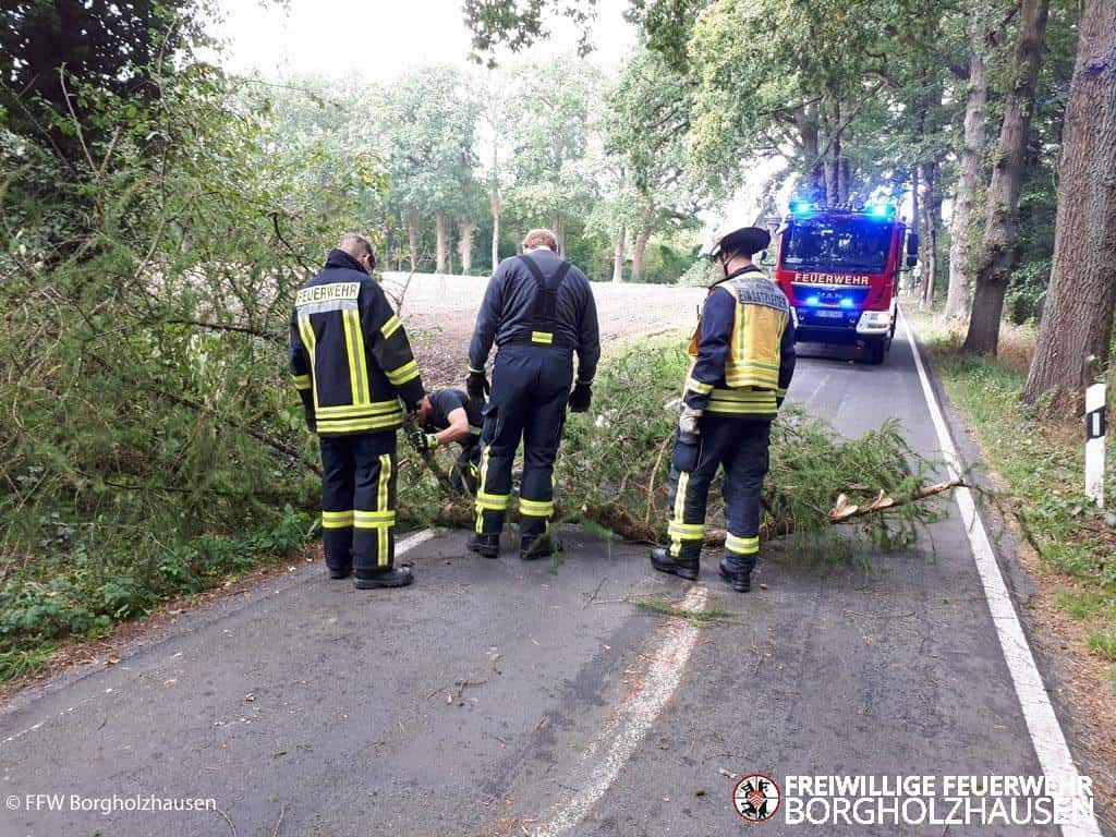 Lage bei Eintreffen: Ein Baum war aus unbekannter Ursache umgestürzt und blockierte die Fahrbahn.