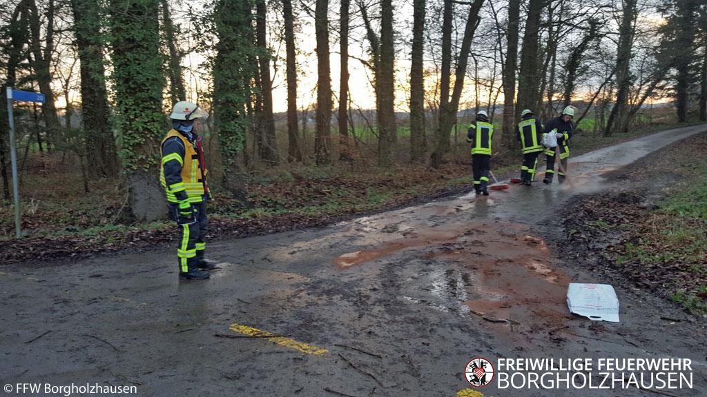 Die Ölspur war durch eine defekte Hydraulikleitung an einem Güllefass verursacht worden.