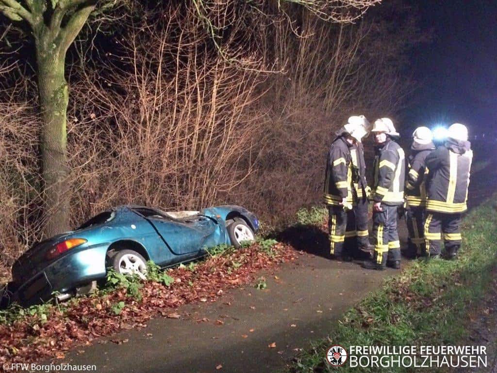 Lage bei Eintreffen: Ein PKW lag auf dem Kopf im Straßengraben.