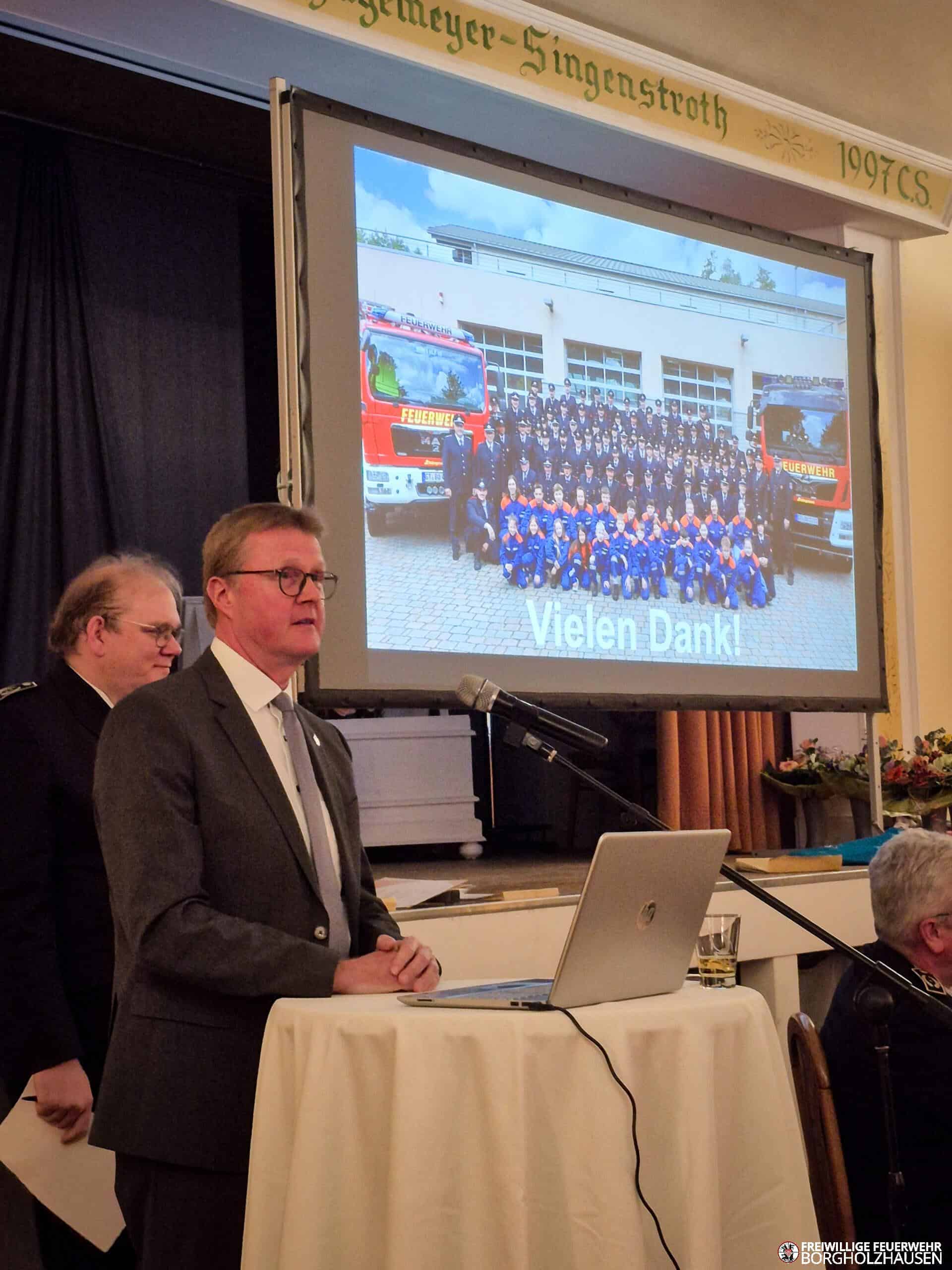 Die Jahresberichte der Einheiten zeigten, wie aktiv die Feuerwehr Borgholzhausen aufgestellt ist. Besonders erfreulich war die große Zahl an Neuaufnahmen, die in der Versammlung offiziell begrüßt wurden. In seiner Ansprache würdigte der Bürgermeister die Bedeutung des Ehrenamts und sagte:
