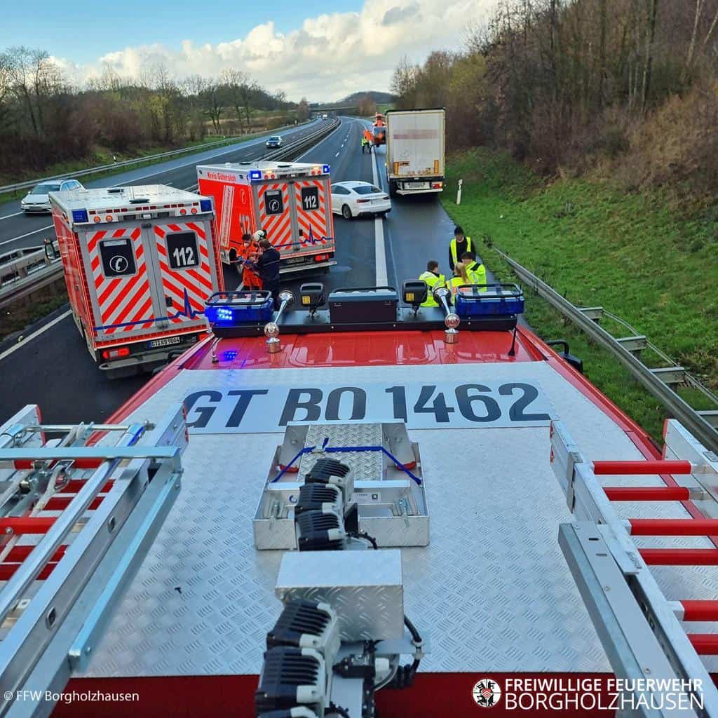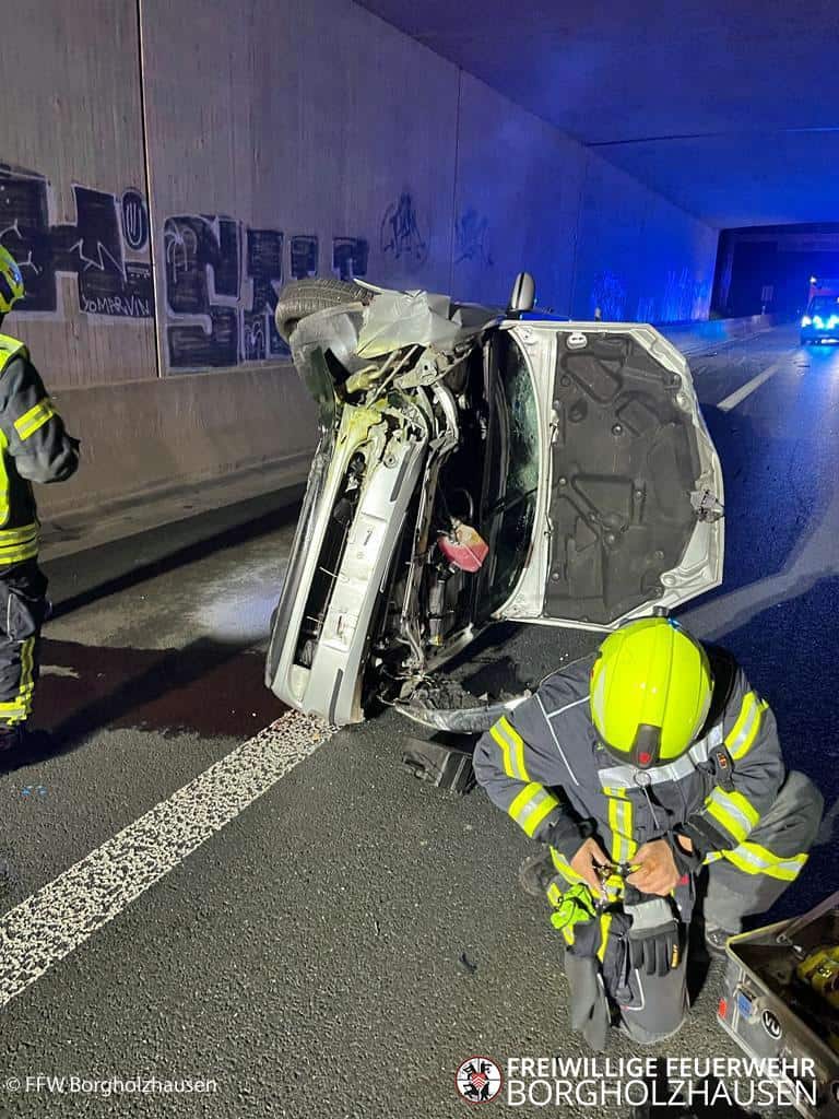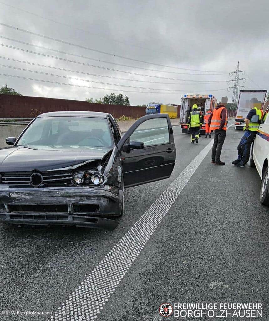 Lage bei Eintreffen: RTW war bereits an der EST eingetroffen. Der Unfall-Pkw stand schräg auf dem rechten Seitenstreifen, kurz vor der Abfahrt Halle (Westf.). Ein Teil des Pkw ragte dabei noch in die rechte Fahrbahn hinein. Der Fahrer des Pkw war bereits aus dem Fahrzeug befreit und befand sich zur Behandlung im RTW. Es liefen […]
