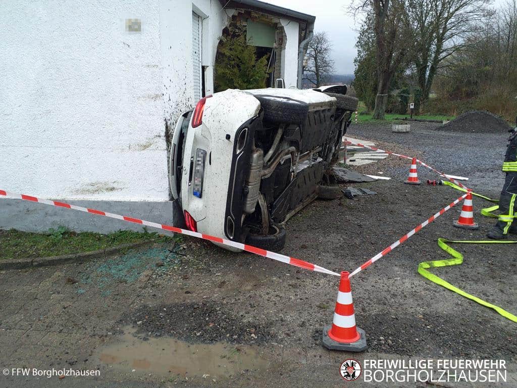 Verkehrsunfall – Auto in Hauswand – 4 verletze Personen