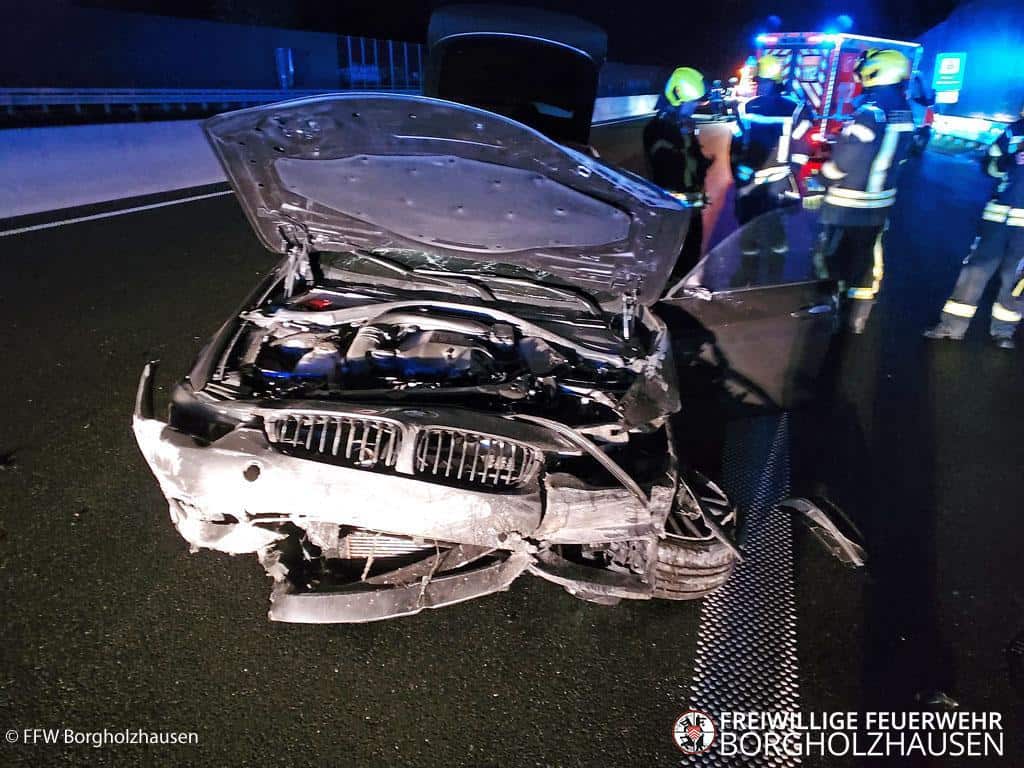 Lage bei Eintreffen: Auf der BAB 33 – Fahrtrichtung Paderborn war es ca. 1.500 m vor der Abfahrt Halle (Westf.) zu einem Alleinunfall eines PKW gekommen. Bei Eintreffen wurde der Fahrer bereits im RTW versorgt. Er war wach, ansprechbar und orientiert. Er gab an, allein unterwegs gewesen zu sein. Aus dem stark deformierten PKW liefen […]